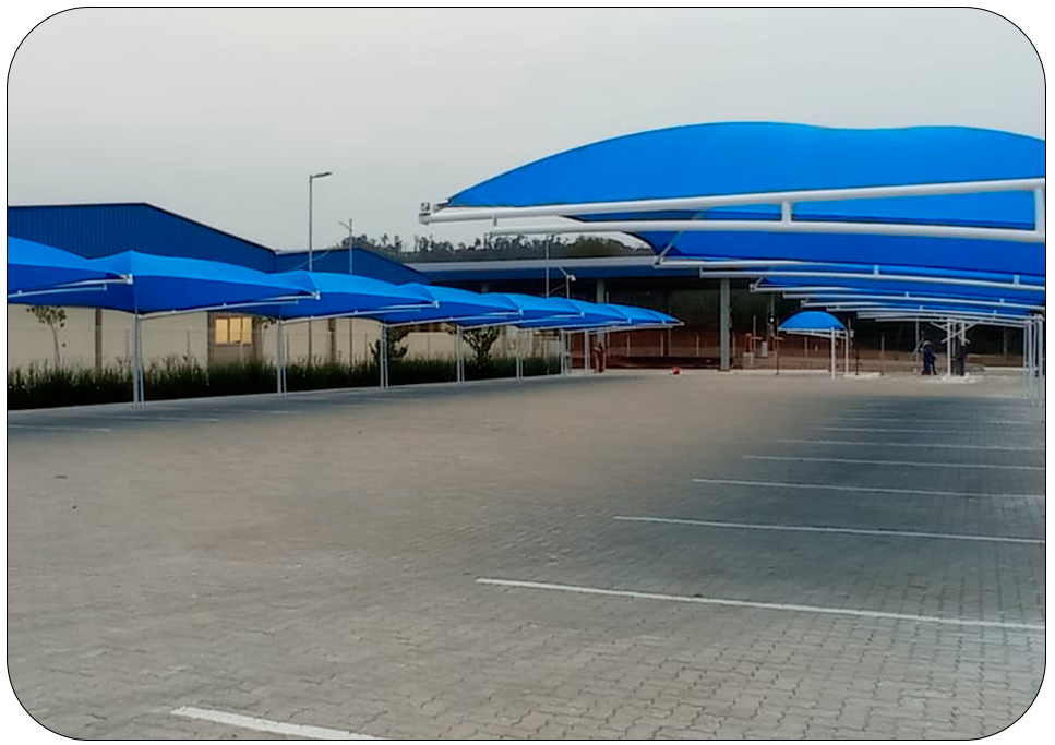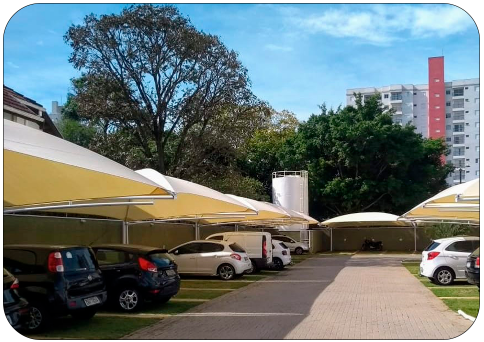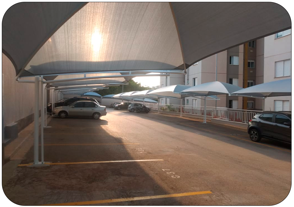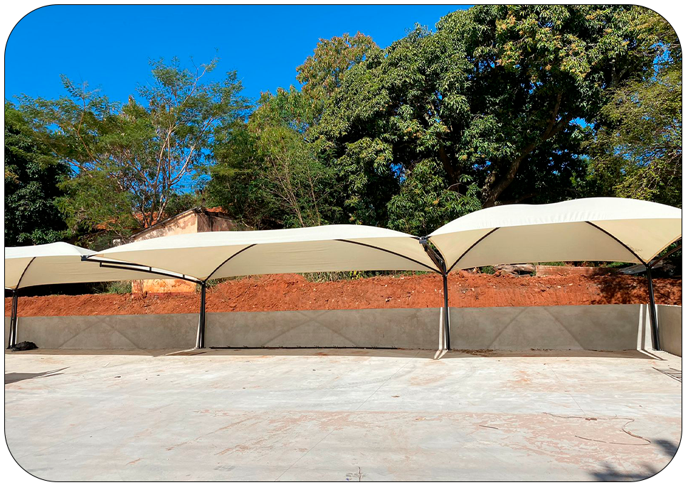 ESTRUTURA METÁLICA: Nossas coberturas são fabricadas com tubos de aço carbono e peças exclusivas de chapas de aço cortadas a laser e dobradas, que passam pelo processo de soldagem MIG, garantindo uma união precisa e duradoura. Após isso, as peças são submetidas a um tratamento antiferrugem, por fosfatização, e recebem uma camada de pintura eletrostática a pó, utilizando uma resina à base de poliéster. Essas técnicas não só asseguram resistência contra corrosão e longa vida útil, mas também conferem um acabamento esteticamente atraente e de alta qualidade.