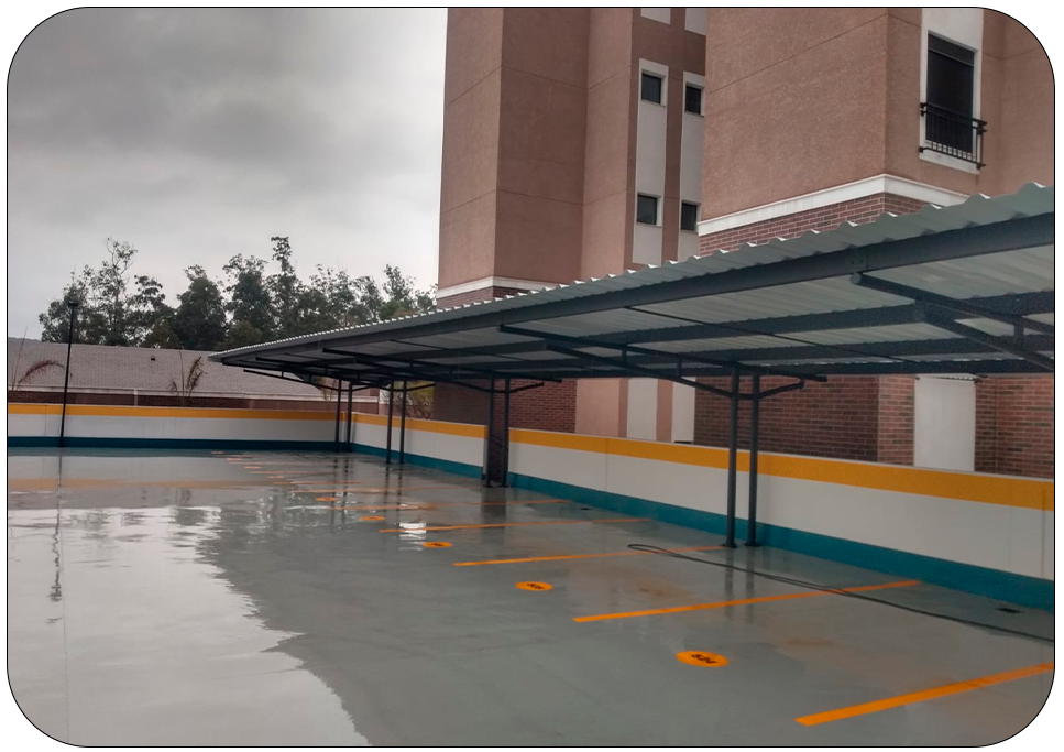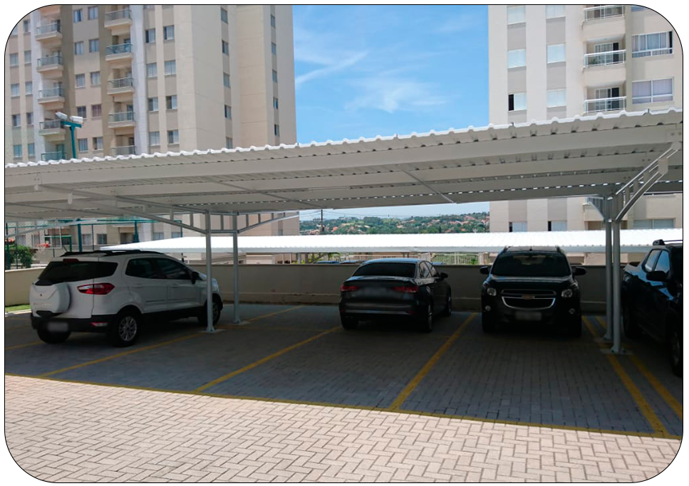 ESTRUTURA METÁLICA: Nossas coberturas são fabricadas com tubos de aço carbono e peças exclusivas de chapas de aço cortadas a laser e dobradas, que passam pelo processo de soldagem MIG, garantindo uma união precisa e duradoura. Após isso, as peças são submetidas a um tratamento antiferrugem, por fosfatização, e recebem uma camada de pintura eletrostática a pó, utilizando uma resina à base de poliéster. Essas técnicas não só asseguram resistência contra corrosão e longa vida útil, mas também conferem um acabamento esteticamente atraente e de alta qualidade.