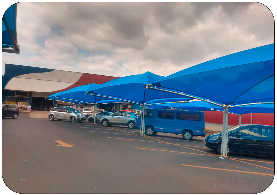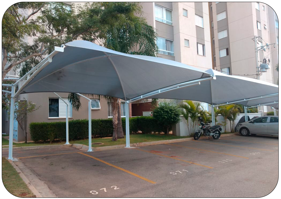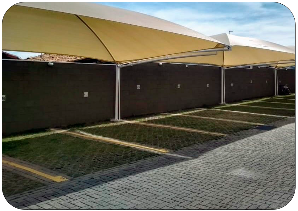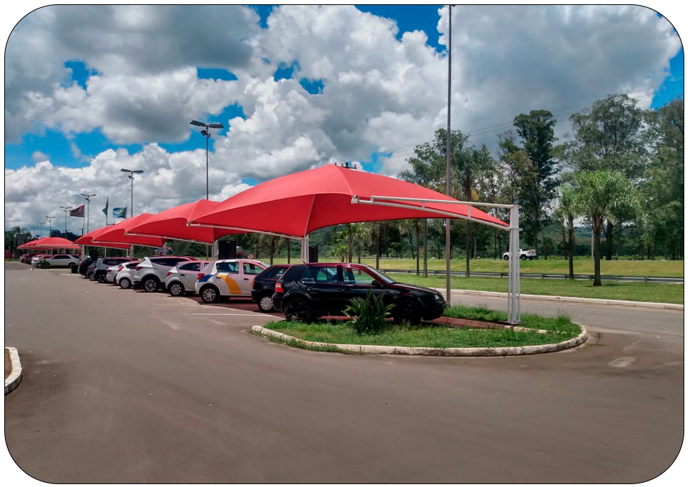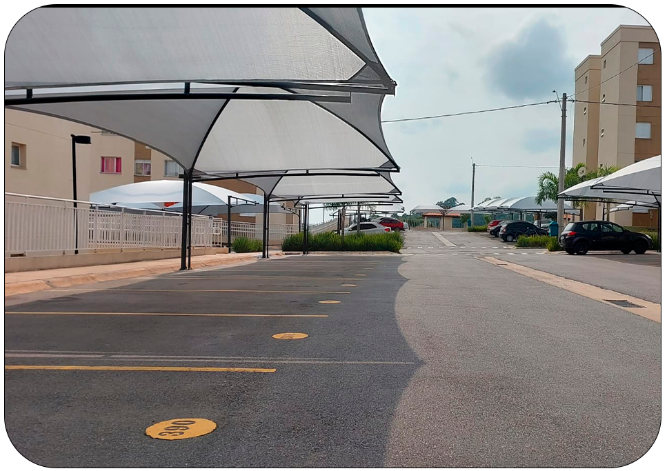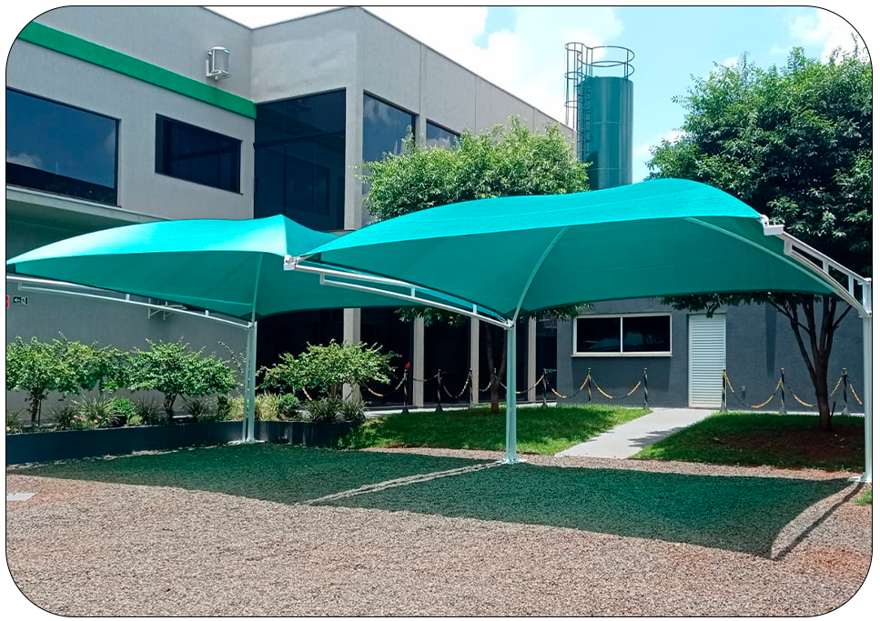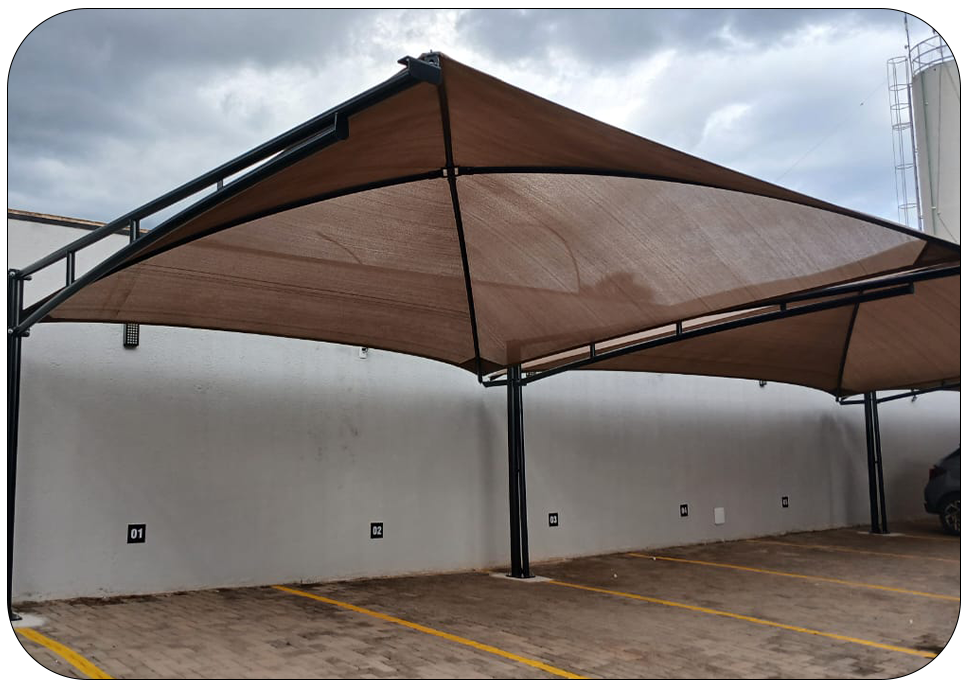 ESTRUTURA METÁLICA: Nossas coberturas são fabricadas com tubos de aço carbono e peças exclusivas de chapas de aço cortadas a laser e dobradas, que passam pelo processo de soldagem MIG, garantindo uma união precisa e duradoura. Após isso, as peças são submetidas a um tratamento antiferrugem, por fosfatização, e recebem uma camada de pintura eletrostática a pó, utilizando uma resina à base de poliéster. Essas técnicas não só asseguram resistência contra corrosão e longa vida útil, mas também conferem um acabamento esteticamente atraente e de alta qualidade.