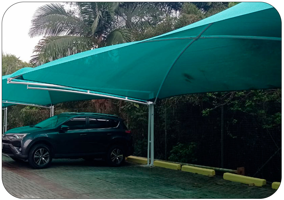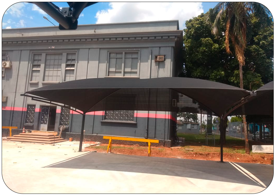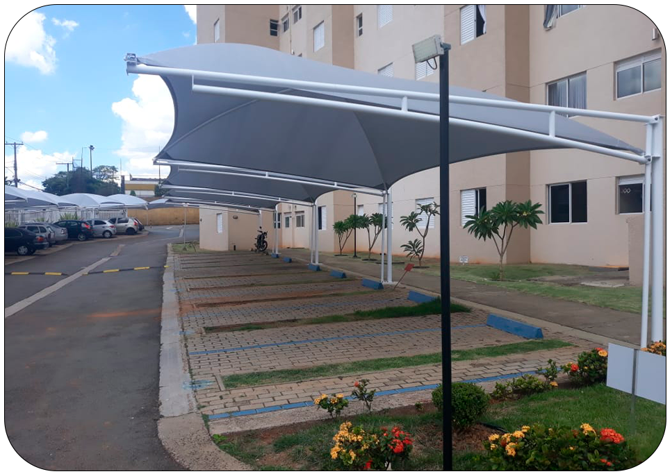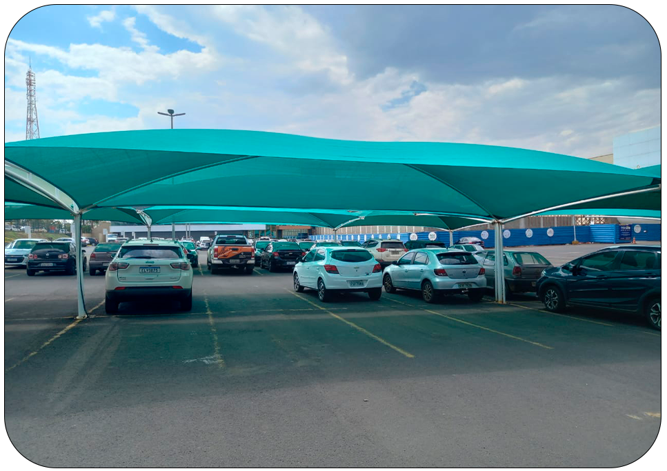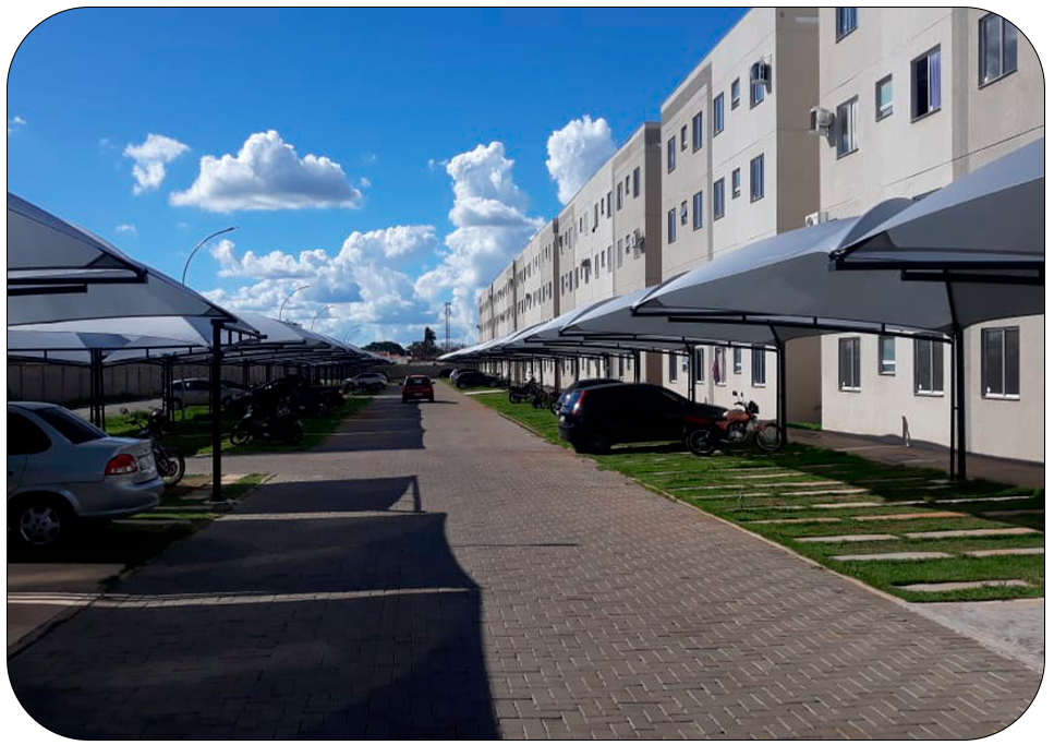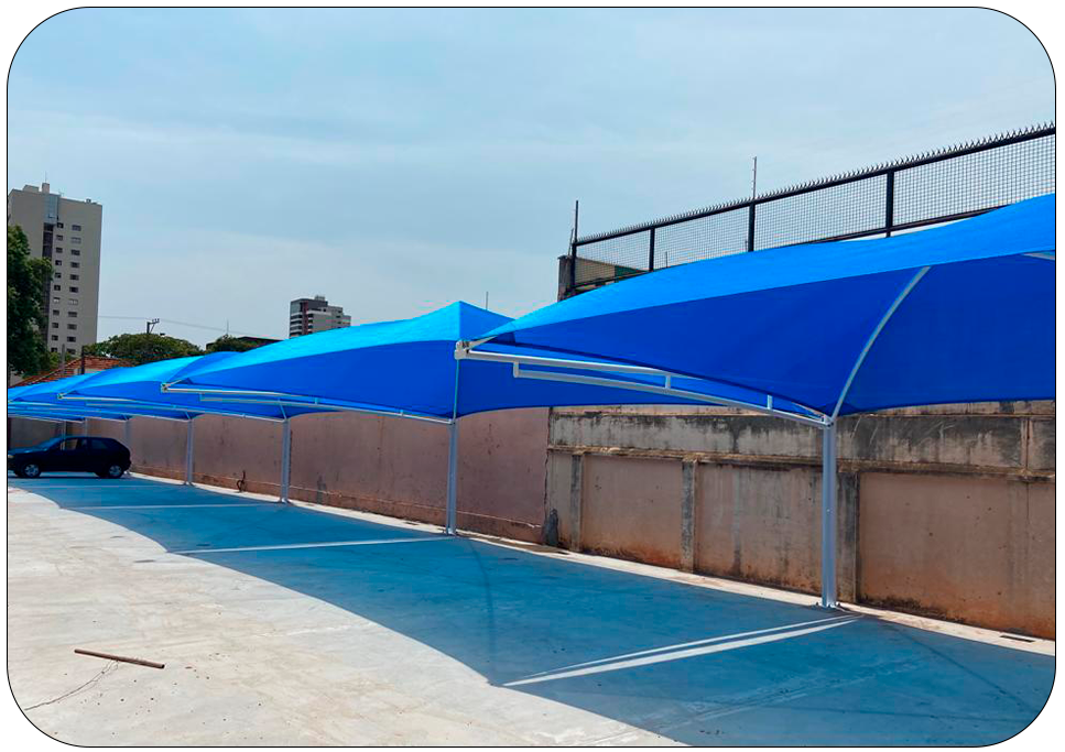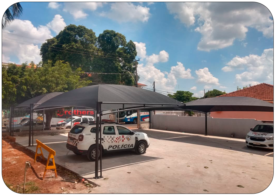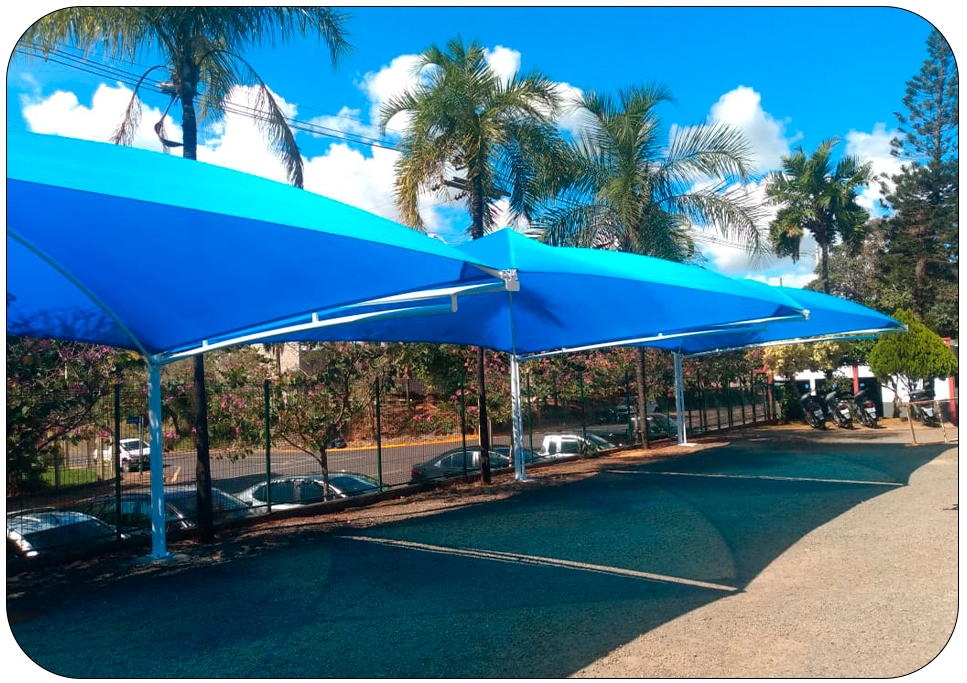 ESTRUTURA METÁLICA: Nossas coberturas são fabricadas com tubos de aço carbono e peças exclusivas de chapas de aço cortadas a laser e dobradas, que passam pelo processo de soldagem MIG, garantindo uma união precisa e duradoura. Após isso, as peças são submetidas a um tratamento antiferrugem, por fosfatização, e recebem uma camada de pintura eletrostática a pó, utilizando uma resina à base de poliéster. Essas técnicas não só asseguram resistência contra corrosão e longa vida útil, mas também conferem um acabamento esteticamente atraente e de alta qualidade.